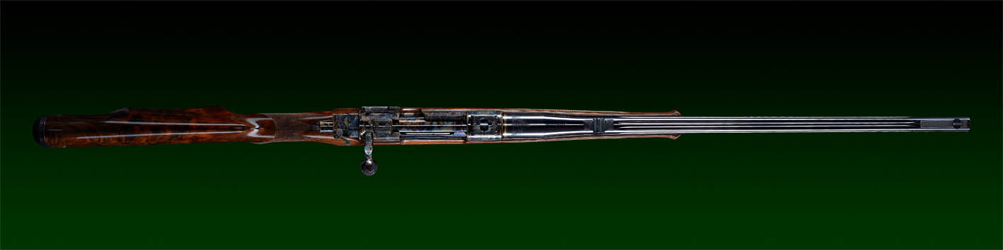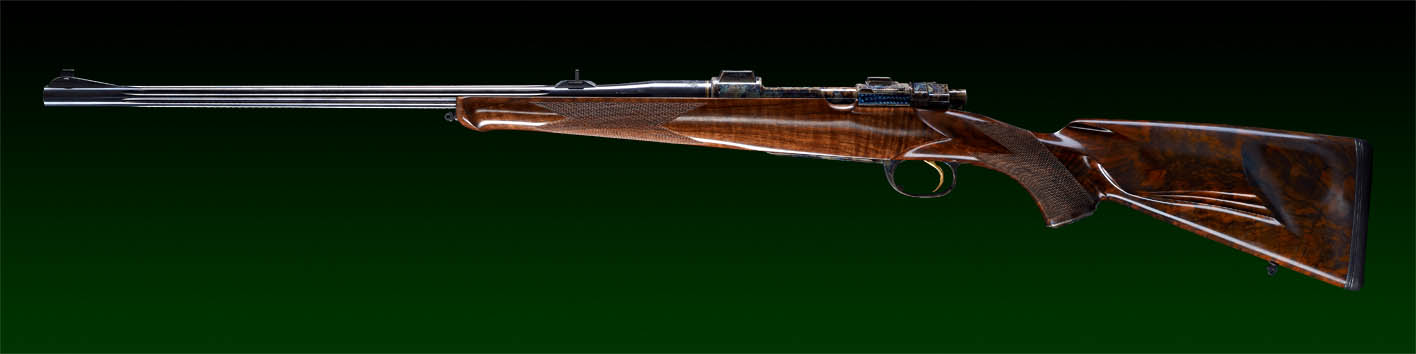 System: M98 DWM1909, fein eingestellter Recknagel Flintenabzug, flache Recknagel Secura Sicherung, verlängerter Kammerstängel, Kammergriffkugel graviert.