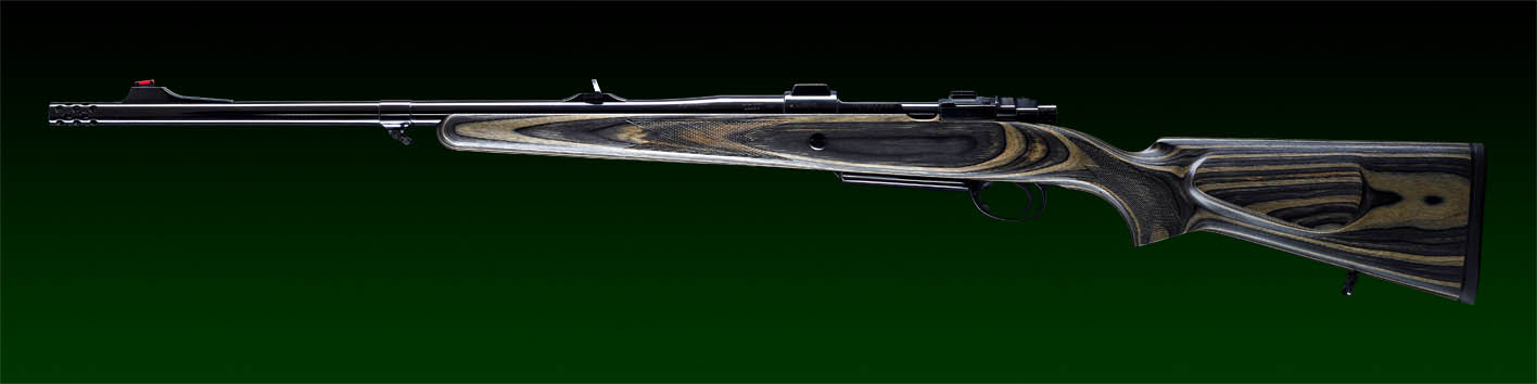 System: M98 Steyr 1912, fein eingestellter Recknagel Flintenabzug, flache Recknagel Secura Sicherung, verlängerter Kammerstängel.