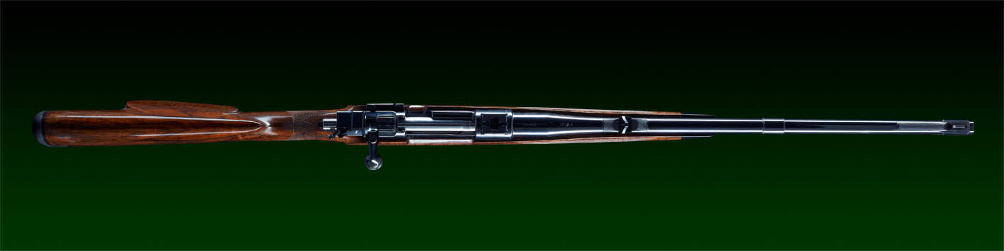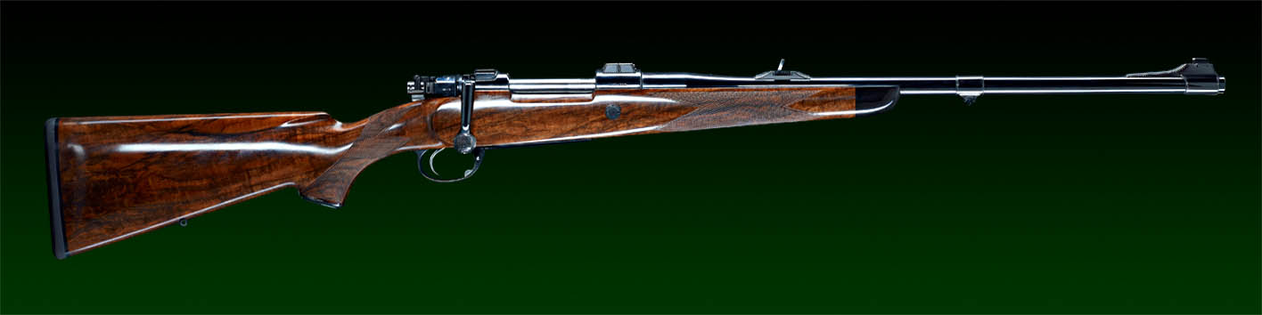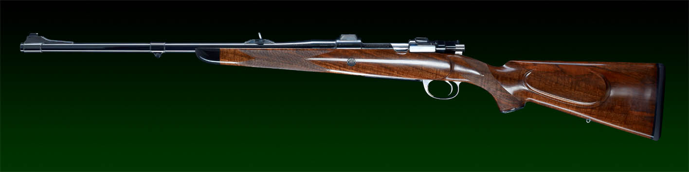 System: M98 DWM1908, fein eingestellter Recknagel Flintenabzug, flache Recknagel Secura Sicherung, verlängerter Kammerstängel.