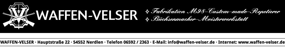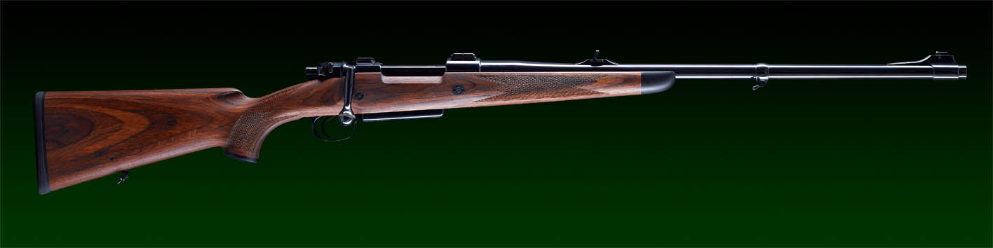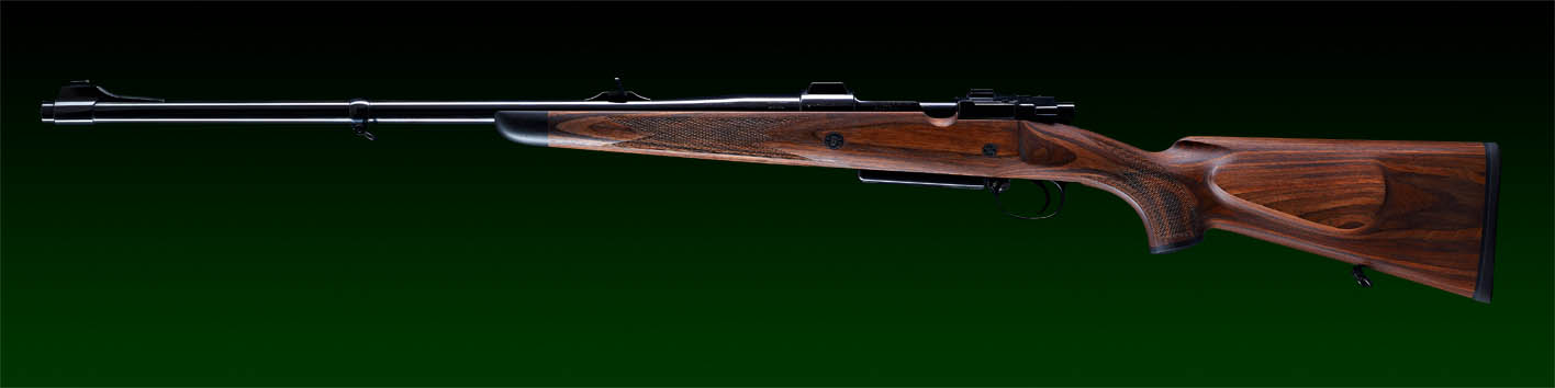 System: M98 Steyr 1912, fein eingestellter Recknagel Flintenabzug, flache Recknagel Secura Sicherung, verlängerter Kammerstängel.