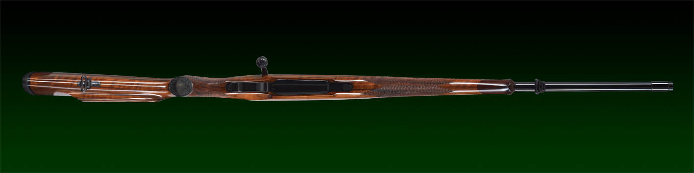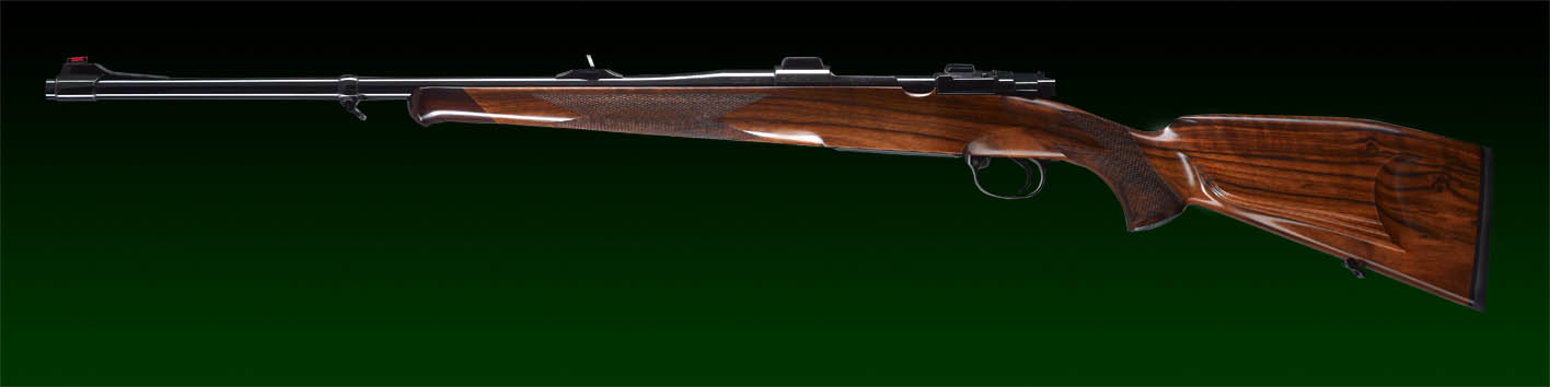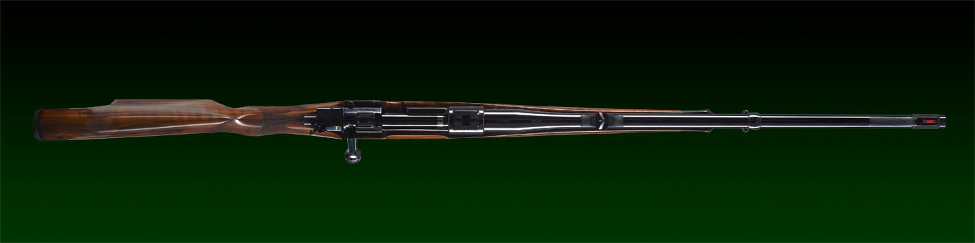 System: M98 Steyr1912, fein eingestellter Recknagel Flintenabzug, flache Recknagel Secura Sicherung, verlängerter Kammerstängel, Kammergriffkugel umlaufend graviert.