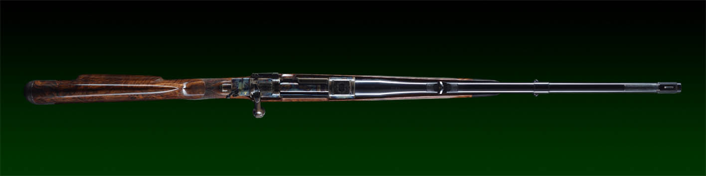 System: M98 DWM 1908, fein eingestellter Recknagel Flintenabzug, flache Recknagel Secura Sicherung, verlängerter Kammerstängel, Kammergriffkugel umlaufend graviert.
