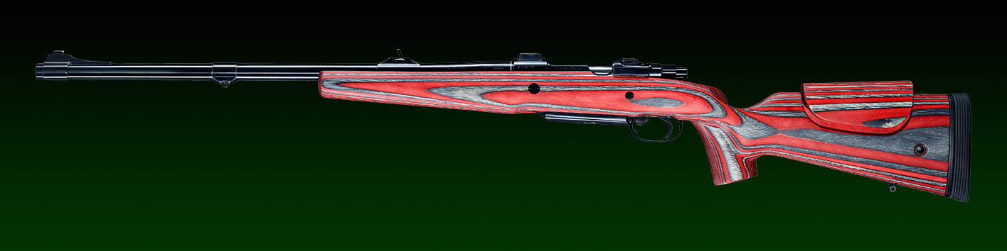 System: M98 Steyr 1912, fein eingestellter Recknagel Flintenabzug, flache Recknagel Secura Sicherung, verlängerter Kammerstengel.