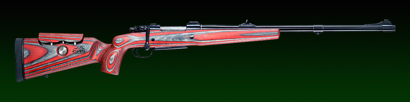 Schaft: GRS Schichtholzschaft, Modell Safari, Farbe Black/Red, mit höhenverstellbarem Schaftrücken, CUSTOM Inlet Vollflächige Kunststoff- Systembettung, 25mm Gummischaftkappe, Limp Saver.